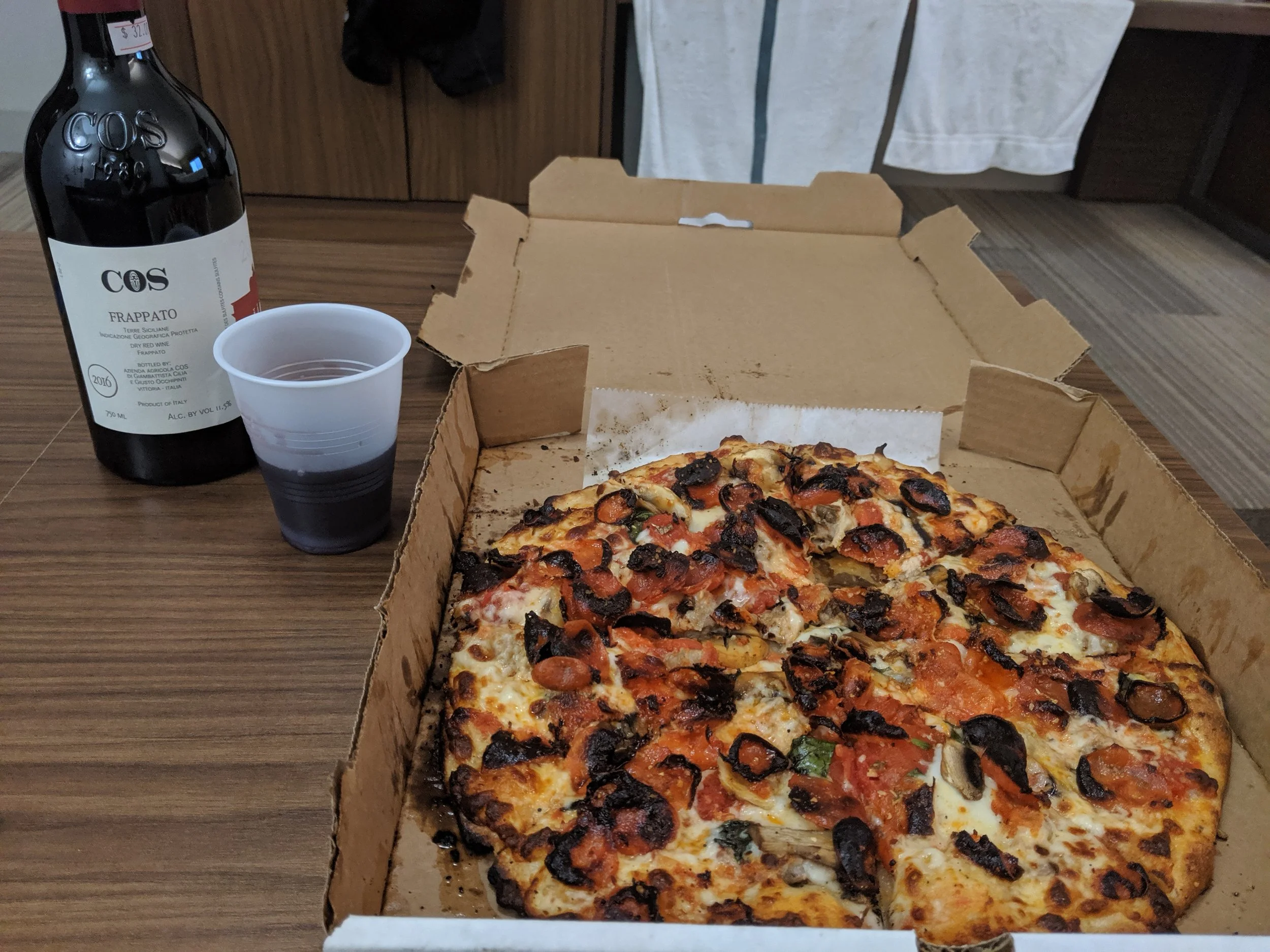 The weather held, for the most part, until the hour. Then, intermittenly the sky opened up and dumped on me. The streets quickly flooded, but I was home free. I made it to the hotel, took a shower, ordered a pizza and bought an entire bottle of the most perfect pizza wine, COS Frapatto. It was a cozy night. I made an appointment to have my bike disassembled and boxed up to ship back to California and went to sleep dreaming of bear hugs and puppy kisses.