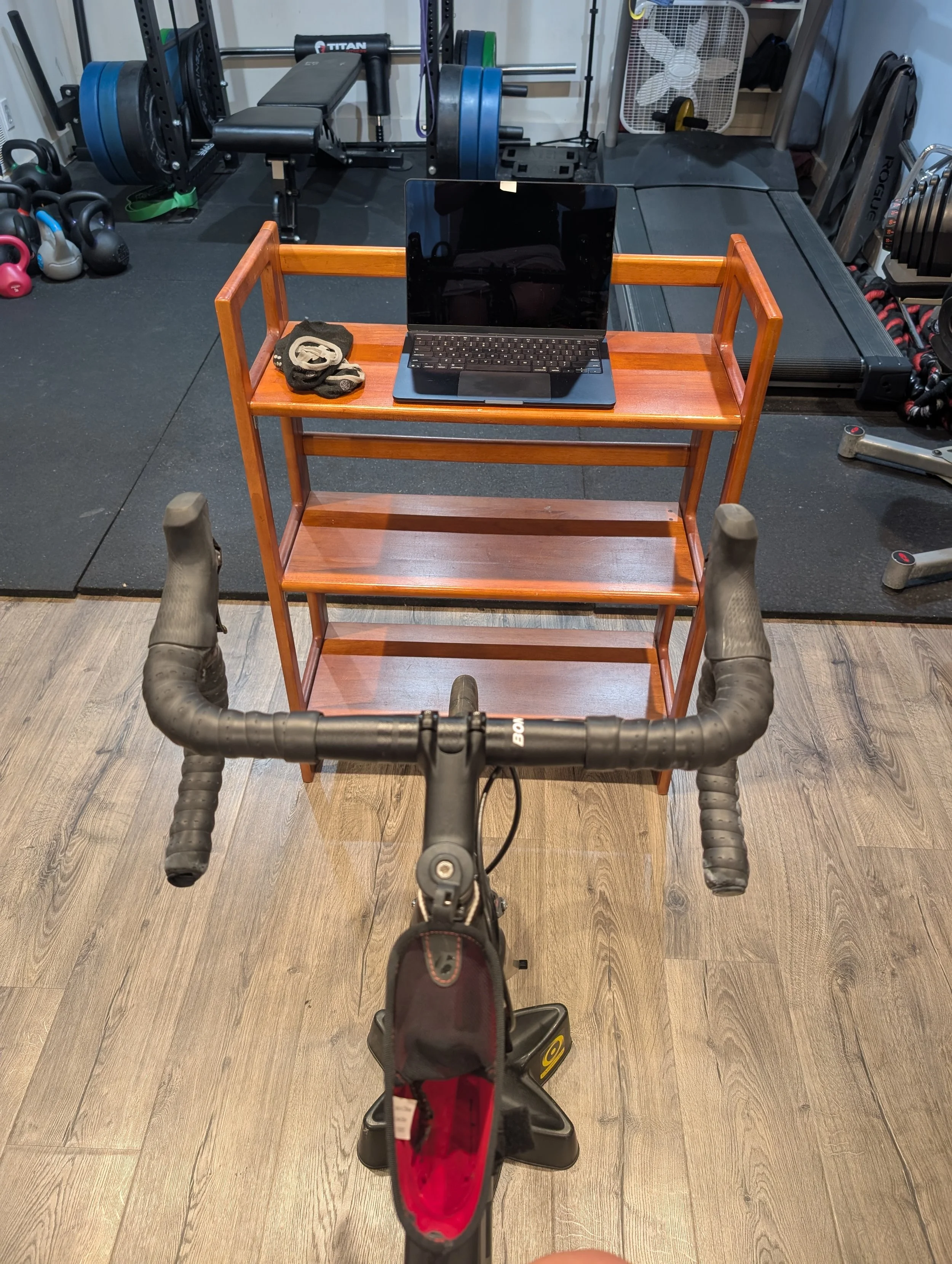 My first spin session. See what I mean about my husband’s kettlebells?!